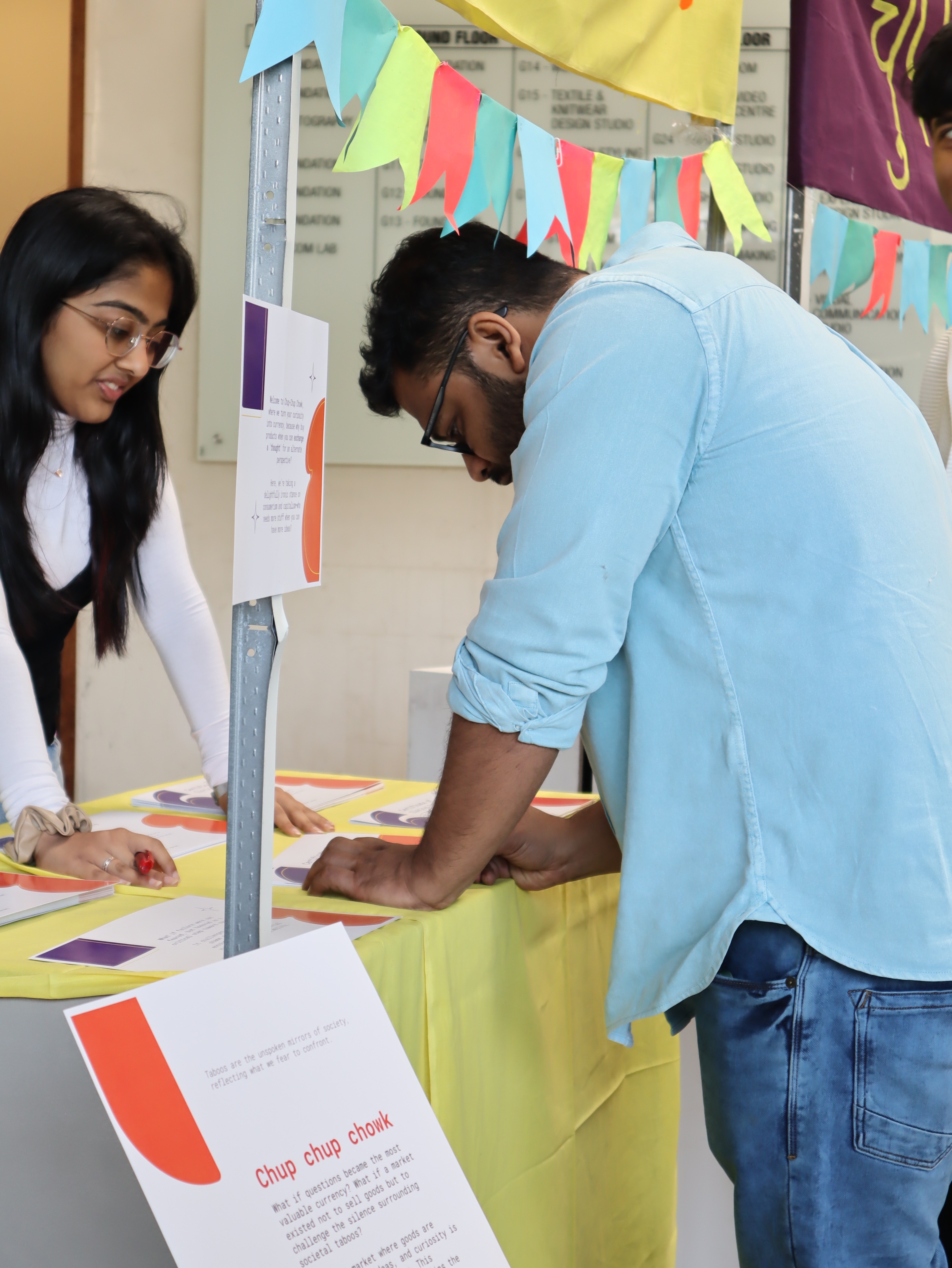 We conceptualised a ‘chowk’-inspired marketplace that reimagines taboos as commodities to provoke dialogue among teenagers and adults around taboos in the Indian context.